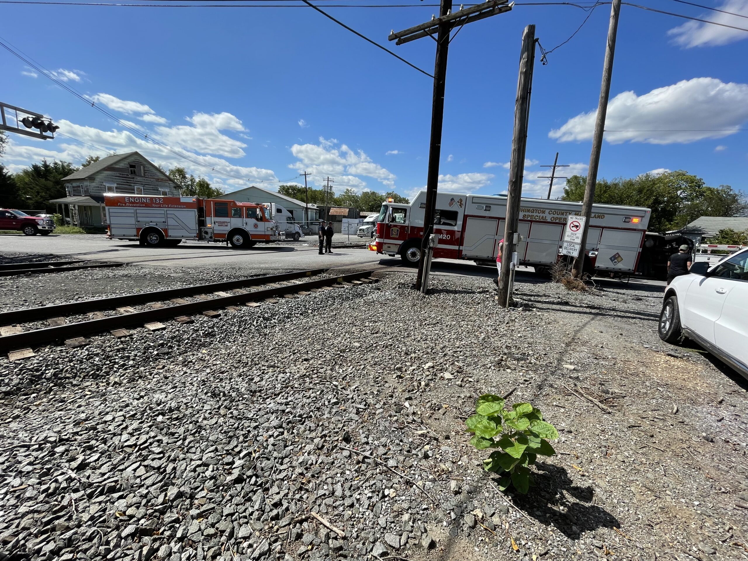 Company 13 was alerted by a civilian that a train had hit a semi truck by the fire station. The crew from Medic 759, along Rescue Squad 13 responded to the accident. There were no injuries or entrapments. Crews quickly worked to contain large quantities of fluids that were leaking from the semi. Hazmat 20 was requested to pump off the fuel tanks as well. The scene was turned over to the railroad for investigation.